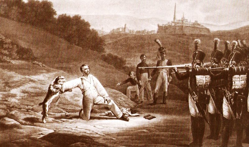 Гравюра Ж.-П.-М. Жазе «Военная казнь. Расстрел подполковника Энгельгардта».