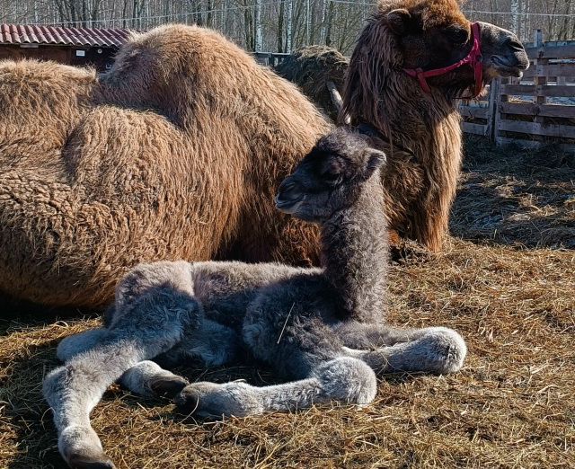 «Яша, несмотря на то, что он самец, любит не только свою верблюдицу, но и своих детей. Он закрывает Милу от ветра, зовёт её к кормушке, беспокоится, если долго не видит. А когда у них родилась дочь Лилу, Яша стал заботиться и о ней. В общем ведёт себя как настоящий глава семейства», – делится Анастасия. От нее узнаем, что это очень мохнатые и величественные животные. Они прекрасно чувствуют себя в нашем климате, легко переносят и сильный мороз, и жару. Зимой у них шерсть отрастает почти на 30 см, и они могут лежать на снегу, прижавшись друг к другу. Летом же полностью линяют, у них появляется мелкая-мелкая шёрсточка, со стороны кажется даже, что они лысые. Единственное, чего не любят степные верблюды – дождливую погоду, когда грязно, мокро: у них не копыта, а лапки, и лапкам не очень приятно ходить по слякоти. Кормят верблюдов сеном, зерном, овощами. В свободном доступе – соль и вода. А вот колючек и полыни в рационе нет.